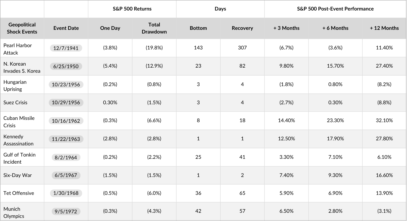 S&P 500 Responses to Select Geopolitical Events Since World War II (Click on image to view full chart)